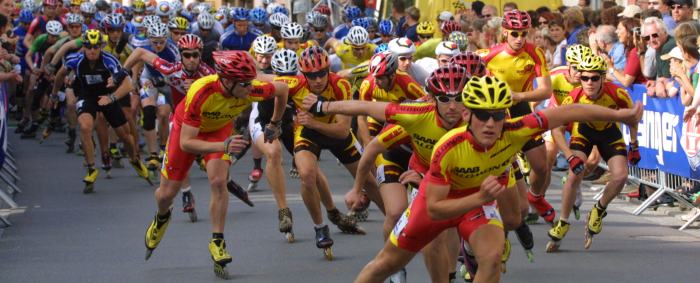 Spektakuläres Ausscheidungsrennen im Anschluss, an dem eingeladene Elite-Skater und die Zeitbesten aus den vorhergehenden Rennen teilnehmen dürfen. | |